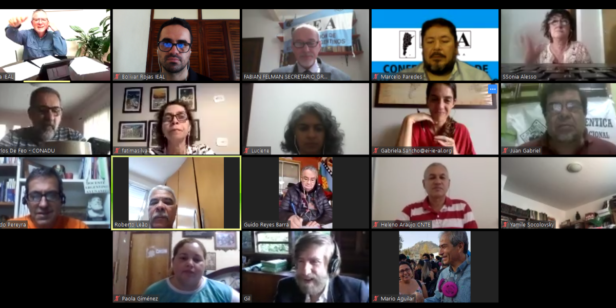 Las organizaciones sindicales de la educación afiliadas a la Internacional de la Educación América Latina (IEAL) en Argentina, Brasil, Chile, Paraguay y Uruguay realizaron una videoconferencia el martes 19 de mayo para dialogar...