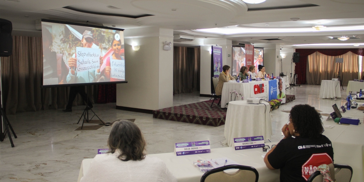 Al cierre del Encuentro también se presentó un video que mostró la realidad que enfrentan las y los trabajadores de la educación en Gaza, quienes siguen trabajando en medio del asedio y la violencia. Con este se reiteró el llamado a la solidaridad con el pueblo palestino y con las y los docentes que siguen defendiendo el derecho a la educación en condiciones extremas.